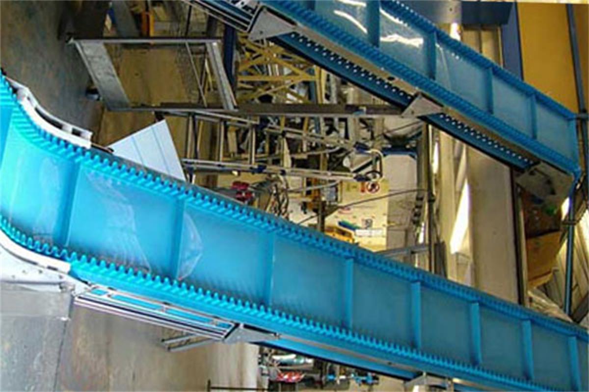 大傾角皮帶機放入擋邊帶式輸送機為一般用途的散狀物料連續(xù)輸送設(shè)備,大傾角皮帶機采用的是具有波狀擋邊和橫隔板的輸送帶。因此,適用于大傾角輸送。
