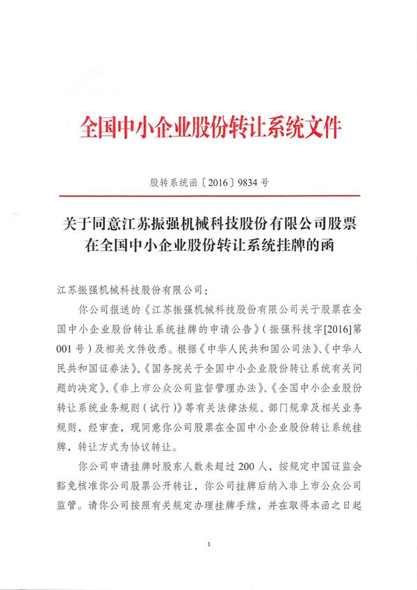 江蘇振強(qiáng)機(jī)械科技股份有限公司 >> 公司簡(jiǎn)介 >> 資質(zhì)證書 >> 允許振強(qiáng)股份掛牌